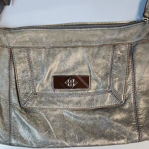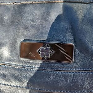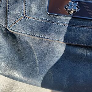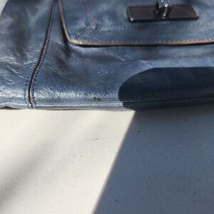 BCBG Maxazria Y2K Blue Leather Shoulder Bag Satchel Purse Zipper Front Pocket