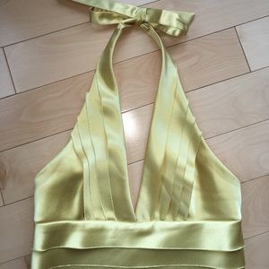 BCBG yellow/gold halter cocktail dress. Size 02. Only ever worn once!