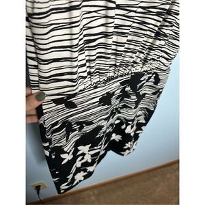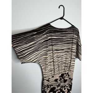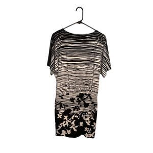BCBG Maxazria dress dolman sleeve stretch knit stripes floral black white Size X