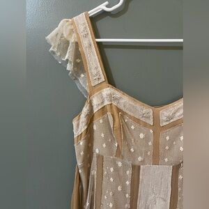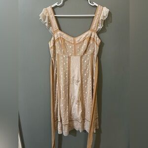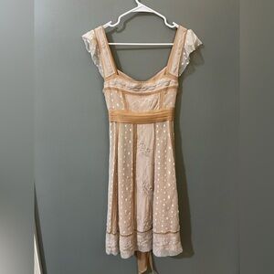 BCBG Maxazria embroidered lace overlay cocktail dress flutter sleeve size 6