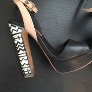 Black sandals with ceramic tribal design on the heel! Strap around the ankle beauties
