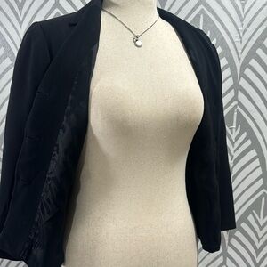 BCBG Maxazria black short black blazer. Three buttons. 3/4 sleeves. Size 10. Measures 20 inches pit to pit. Length measures 21 inches.