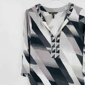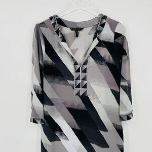 BCBG Maxazria Size Small Black & Gray Abstract Art Deco V Neck Mini Shift Dress