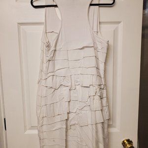 White ruffled sleeveless dress by BCBG Maxima. Is about mid thigh length and has a tank top back