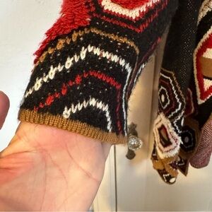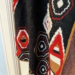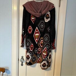 BCBG Maxsport Cardigan Longline Open Front Aztec Black Rust & Red Hooded Size S