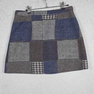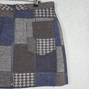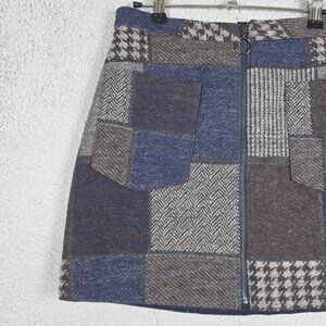 BCBG Maz Azria Mini Skirt Womens Small Mollee Patchwork Wool Dark Academia Lined