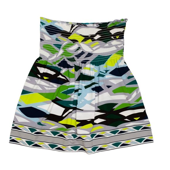 Geometric print smocked tube top, gray, green, teal, lime, pullover top,