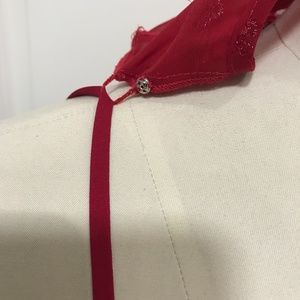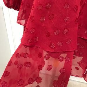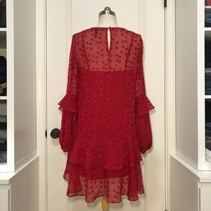 Perfect shade of red /subtle silver metallic jacquard chiffon mini dress