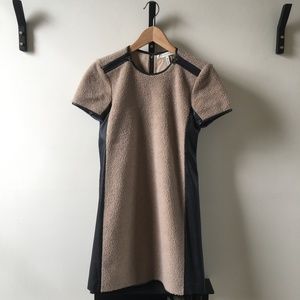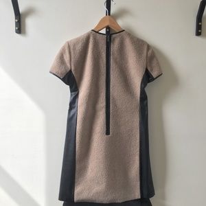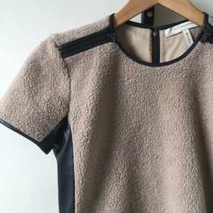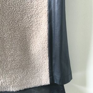 BCBG MaxAzria Runway SoyChai colore shearling bodice, black leather side panel and zipper shoulder detailing