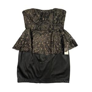 BCBG Mini Dress Womens Size 6 Strapless Metallic Faux Leather Lace Peplum NEW. Condition is New with Tags