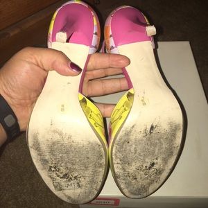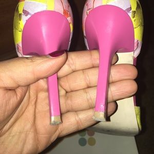 Great condition!!!! These shoes were a must for me the moment I saw them but unfortunately my feet have changed since having my son and they no longer fit anymore.... there are very small scratches toward the bottom of the heels from outside walk otherwise only other visible signs of wear are in the soles. PERFECT FOR THE OFFICE OR A NIGHT OUT WITH THE GIRLS! ❤