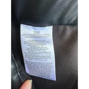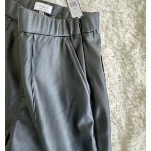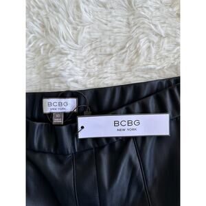 Brand: BCBG Style: Edgy sophistication with a modern twist on classic style. Type: Faux-leather cropped pants. Fit: Tailored for a woman's silhouette. Size: 10 Rise: High-rise. Leg Style: Wide-leg. Color: Sleek black. Fabric: Durable blended fabric. Versatility: Suitable for casual outings and more glamorous events. Features: Practical pockets and a flattering flat front. Closure: Pull-on closure for ease of wear. Details: Faux fly and zipper accents for added elegance. Care Instructions: Hand-wash recommended. Ideal Seasons: Spring and winter collection. Overall Impression: Chic addition to any wardrobe, offering understated yet impactful style.