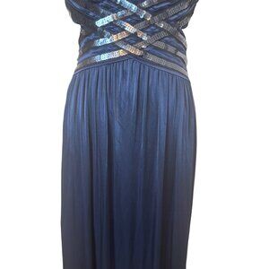 BCBG Navy Blue Small Sleeveless Sequined Formal Gown Dress With V-Neckline