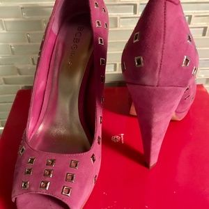 BCBG Suede Peep Toe Platform Pumps 6, Pink/Raspberry - New with box