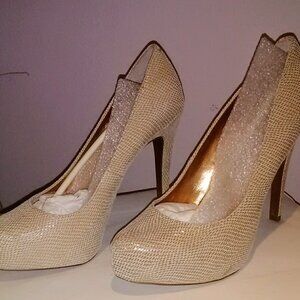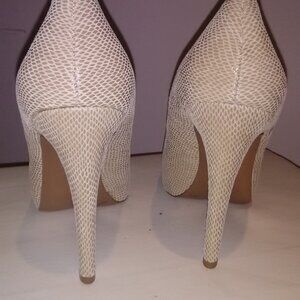 This NWT snake print leather pump is very comfortable due to a hidden platform. Beautiful neutral that will go with anything.