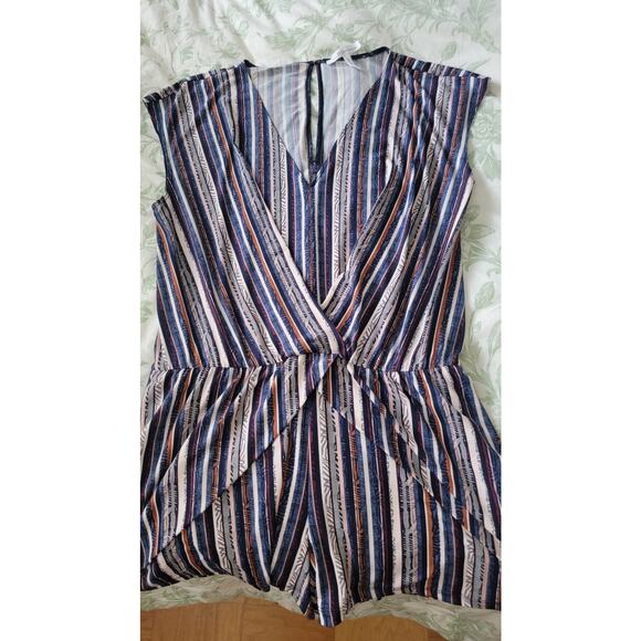 Never worn, one piece sleeveless Romper by BCBG. Size Large, sleeveless v-neck