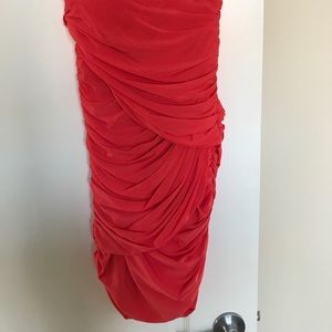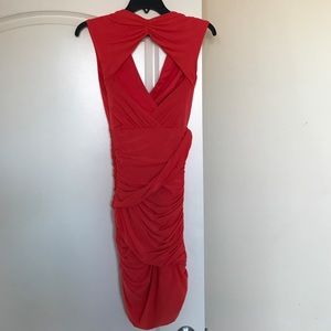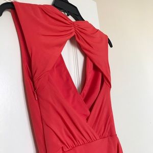 This dress hugs you in all of the right places and is just beautiful, V neck in the front to reveal some cleavage, and a beautiful key hole in the back! Pleat style in both the front and back of the dress. Great for any dressy occasion. Zipper on the side.