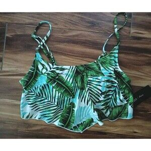 BCBG PARIS Scarf Top Bikini Top Size Medium Green Palm Leaf Swim Tropical New