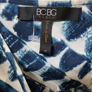 BCBG “PARIS” Wrap Style Onesie Teal Blue Print V-Neck Sleeveless Medi…Ju…