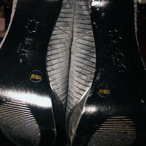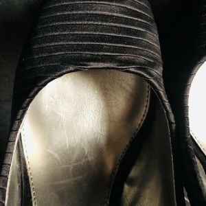 BCBG PARIS size 10 black satin open toe platform pump