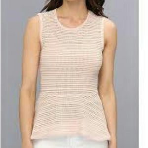 BCBG PERFORATED PINK PEPLUM TOP