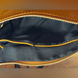 Chic BCBG Paris with Adjustable strap. Shown wearing as shoulder bag & cross body on mannequin. In a striking Basketball Orange hue. Perfect for adding flair to any outfit or sophisticated Basketball Fans that love to dress :) Durable leather, timeless design in hobo creation and a stylish design, sporty color. GREAT for up coming Fall with Autumn leaf colors. NWOT. FLAWLESS . Pictures of bag inside and out with measurements.. liner is perfect. It’s just been hanging in my closet for quite awhile ..
