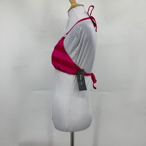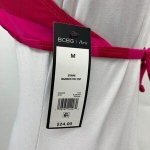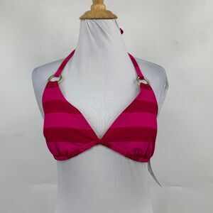 BCBG PARIS BIKINI TOP WOMENS M MEDIUM PINK STRIPED RING HALTER TIE BACK PADDED