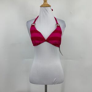 BCBG Paris Bikini Top Womens M Medium Pink Striped Ring Halter Tie Back Padded