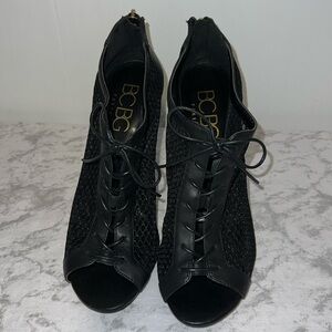 BCBG Paris Black Net Lace Up Bootie