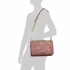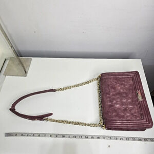 BCBG Paris Carmen Large Textured Leather Chain Shoulder Handbag Mauve Purple
