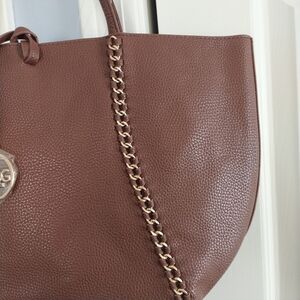 BCBG Paris Faux Brown Leather Shoulder Bag Tote