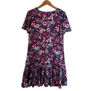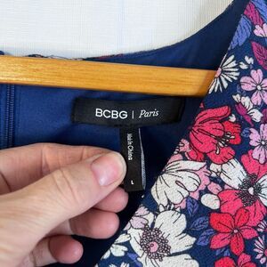 BCBG Paris Floral Print Dress Vneck Flutter Sleeve Drop Sleeve Shift Size Large