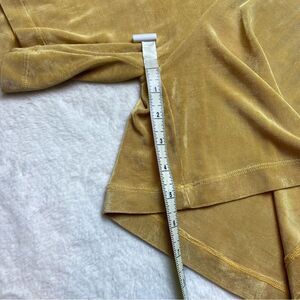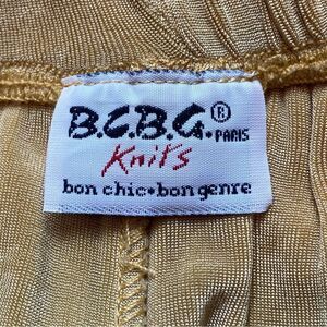 BCBG Paris Knits Vintage Gold Tone Shimmering Pull On Shorts. Great pre-owned condition. Elastic waistband. No size/material tag, feels like synthetic material. Back bottom near hem has a very small snag otherwise great vintage condition. Please use measurements provided for fit. Waist 24", inseam 5.5", rise 13".