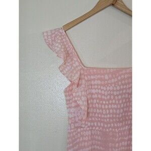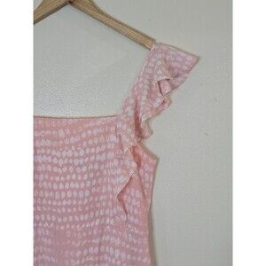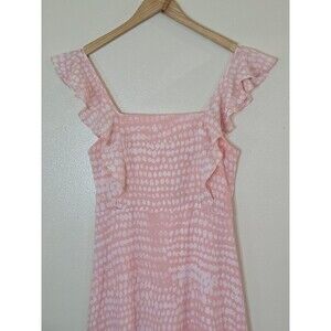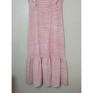 BCBG Paris Ruffle Strap Tiered Midi Dress Womens Size Small Dot Print Pink Peach