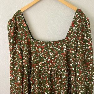 BCBG Paris Square Neck Babydoll Dress Ditsy Floral Boho Cottagecore Tiered XXL