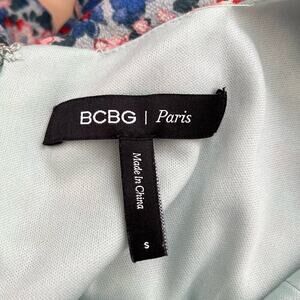 BCBG Paris Tie-Back Chiffon Floral Print Mini Tiered Dress Blue Pink, Size Small