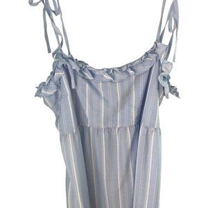 BCBG Paris Top Lined Blue & White Striped Dress Size XXL Tie Straps Side Pockets