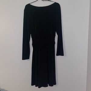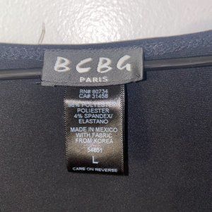 BCBG Paris Womens Long Sleeve V-Neck Fit and Flare Midi Dress Black Size L