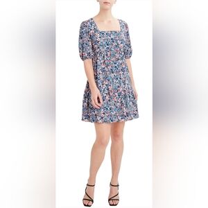 BCBG Paris Women's Pebble Crepe Puff Sleeve Floral Casual Mini Dress Size M