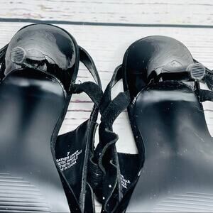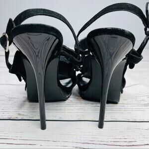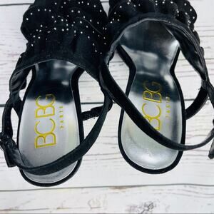 BCBG Paris leather upper ruffle with metal silver accent NEW without tags
