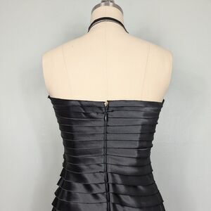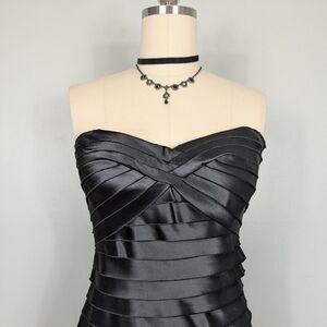 BCBG Prom Dress Maxi Gown 10 Black Ruffle Strapless Glam Goth Satin Tier Classic