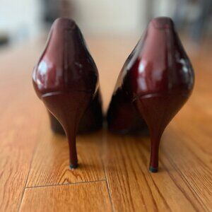 Adorable and comfy pumps with a 4" heel. Plumb color, slightly see-through. Mint condition. Size 7.5.