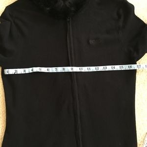 BCBG Rabbit Fur Trimmed Zip Jack, Womens M