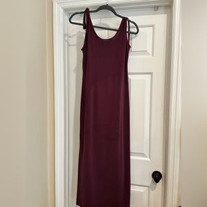 Soft to the touch. Features a side slit and shoulder straps can be adjusted. Hits right below the knee.