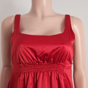 BCBG Red Mini Satin Pockets Empire Waist Thick Strap Dress Sz S