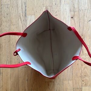Stylish and spacious, the BCBG Red Tote Bag is perfect for everyday use. Its vibrant red color adds a pop of style to any outfit. Good preowned condition with some minor signs of wear/scuffs.