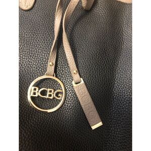 BCBG Reverseble Shoulder Bag Tote Vegan Pebbled Leather Black Gray
