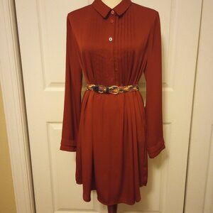 BCBG Rich Burgundy Silky Swing Tunic Shirt Dress sz M