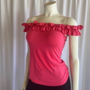 BCBG MAX AZRIA ruffled tank top. Can be worn on or off the shoulders.