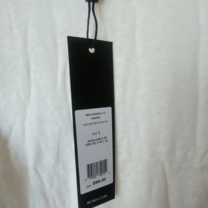 This is so pretty that, I have them on size Large. It's a satin silk like ruffles on the shoulder. In solid white color, very classy. All new with tags and it's original hanger and packaging. Retail for $98.